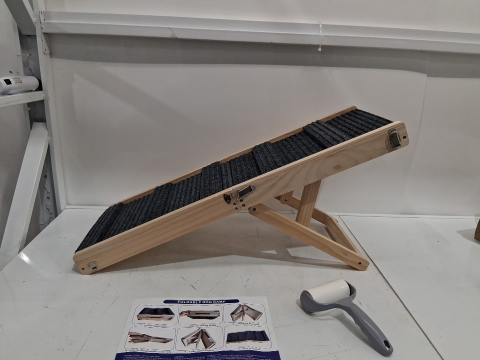 Adjustable Portable Folding Wooden Pet Ramp FOR SMALL DOGS - 32'', 250LB CAP - GREY