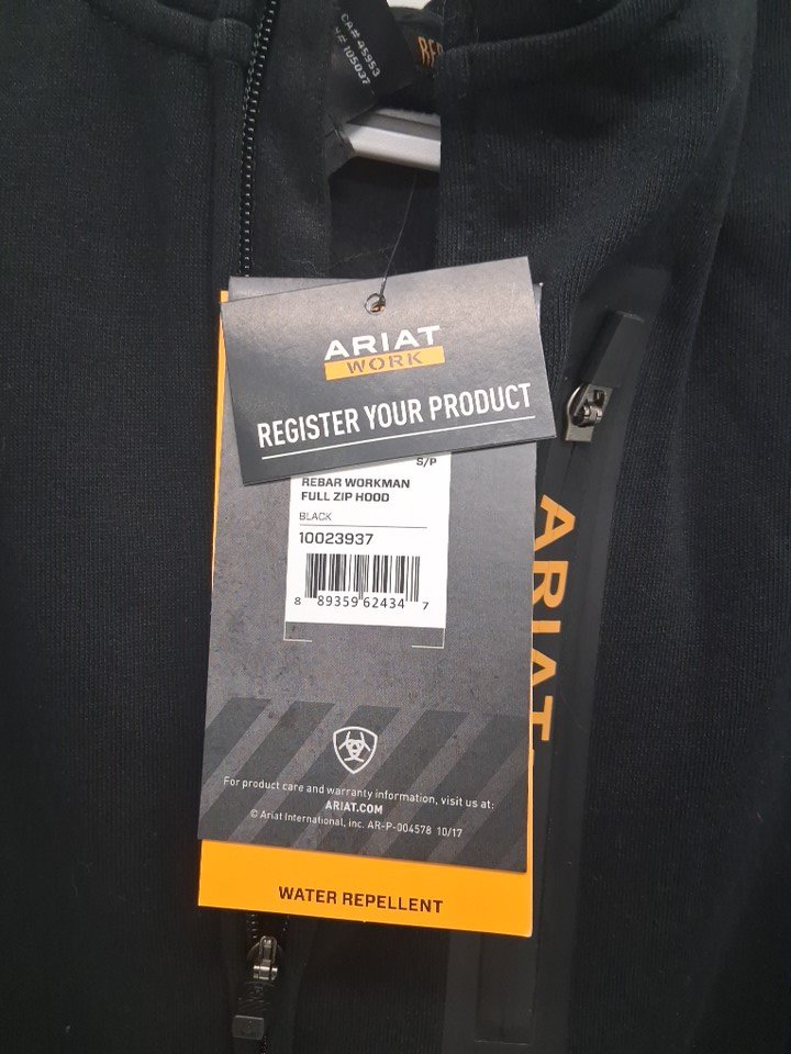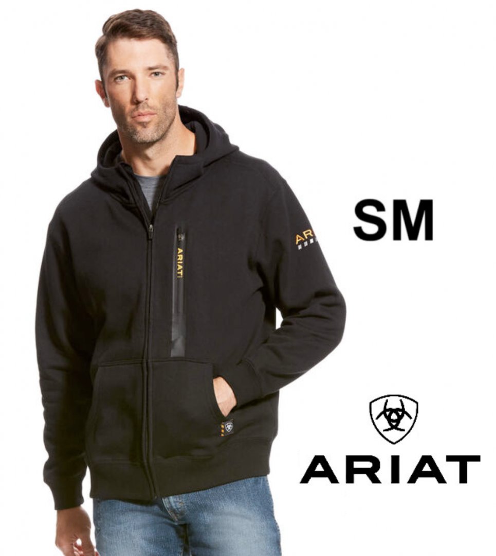 men's ARIAT Rebar Workman Full Zip Hoodie - small - black (model:10023938)