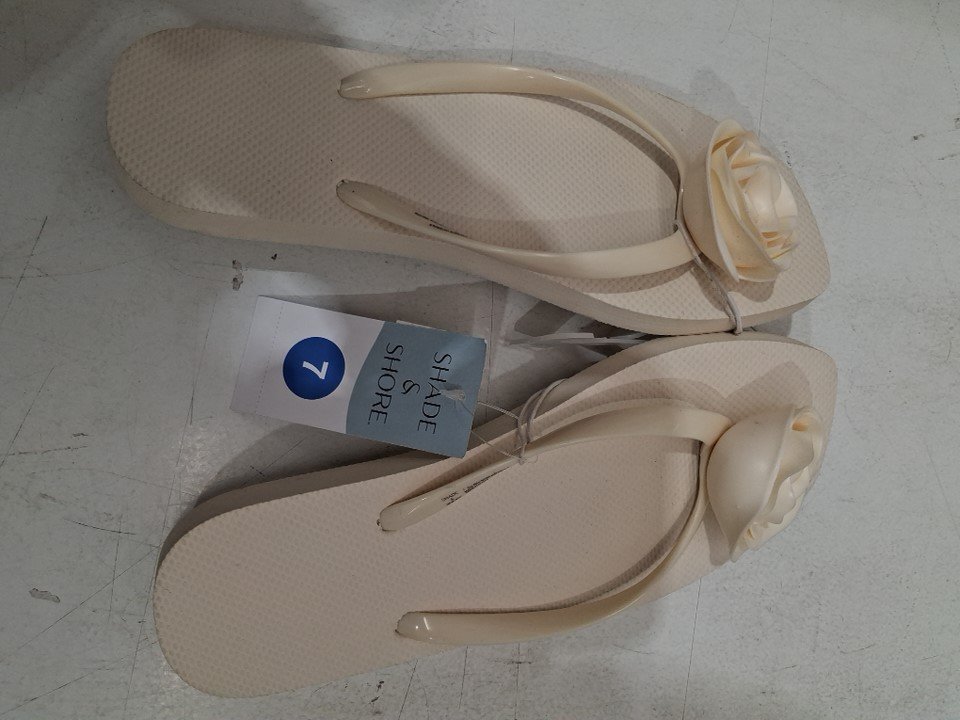 Women's Shade & Shore Rosette Flower Flip Flop Sandals - Size 7 - white