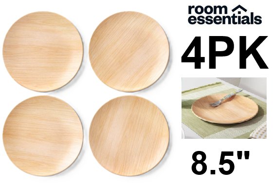 4PK Room Essentials Melamine Salad Plates - 8.5" - NATURAL WOOD