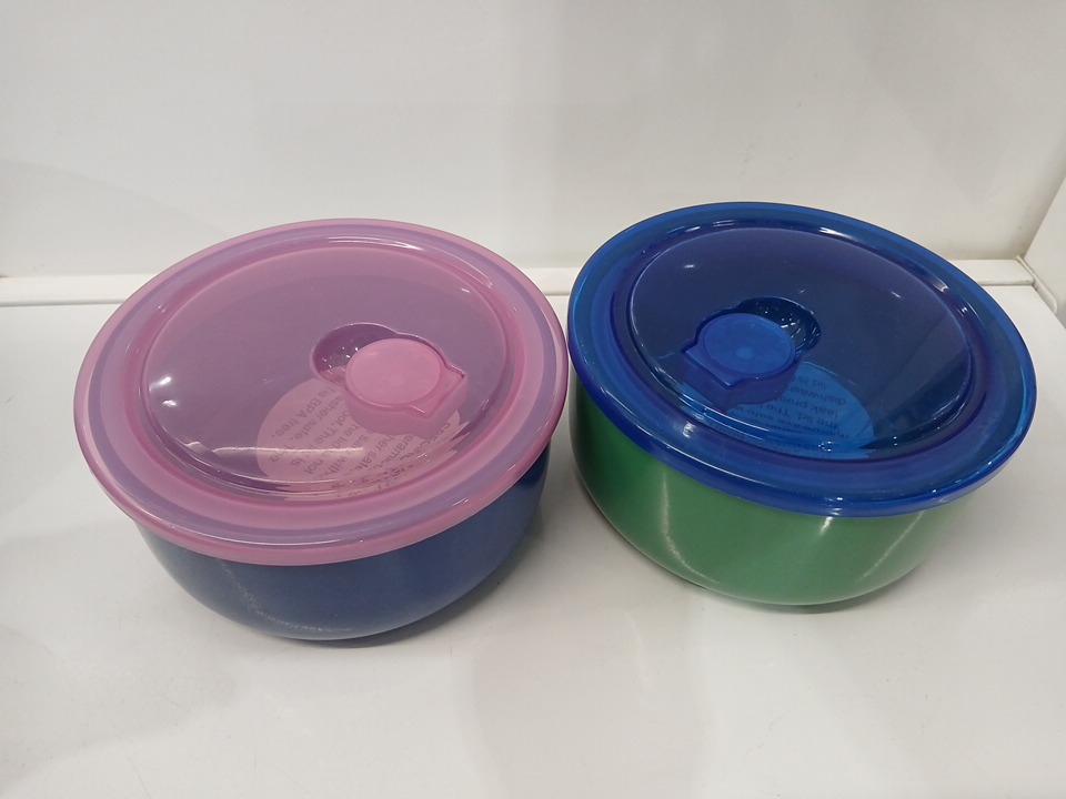 4PC ROOM ESSENTIALS Food Storage Bowl with Vented Lid - 6.5" - BLUE/GREEN/PINK