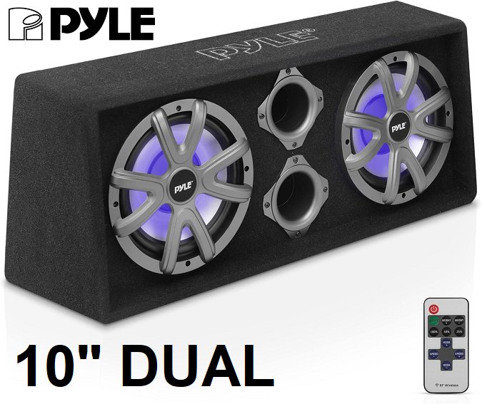 Pyle 10" Powered Dual Subwoofer Speaker, Subs in Vented Enclosure, Slim Mount Truck & Car Audio - Rear Vented Design with Built-in Illuminating LED Lights - 500W - (MODEL: PLBS82LE)