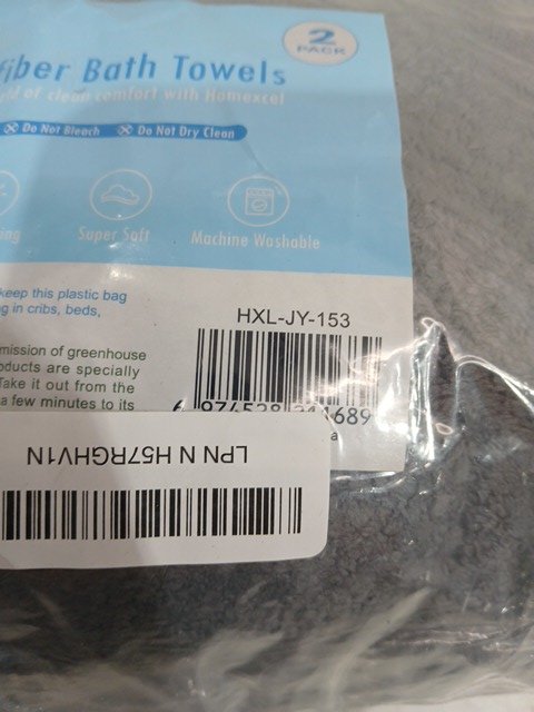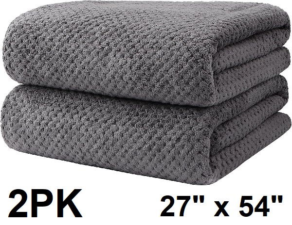 2pk HOMEXCEL microfiber ultra absorbent bath towel set - 27" x 54" - Grey - (Model: HXL-JY-153)