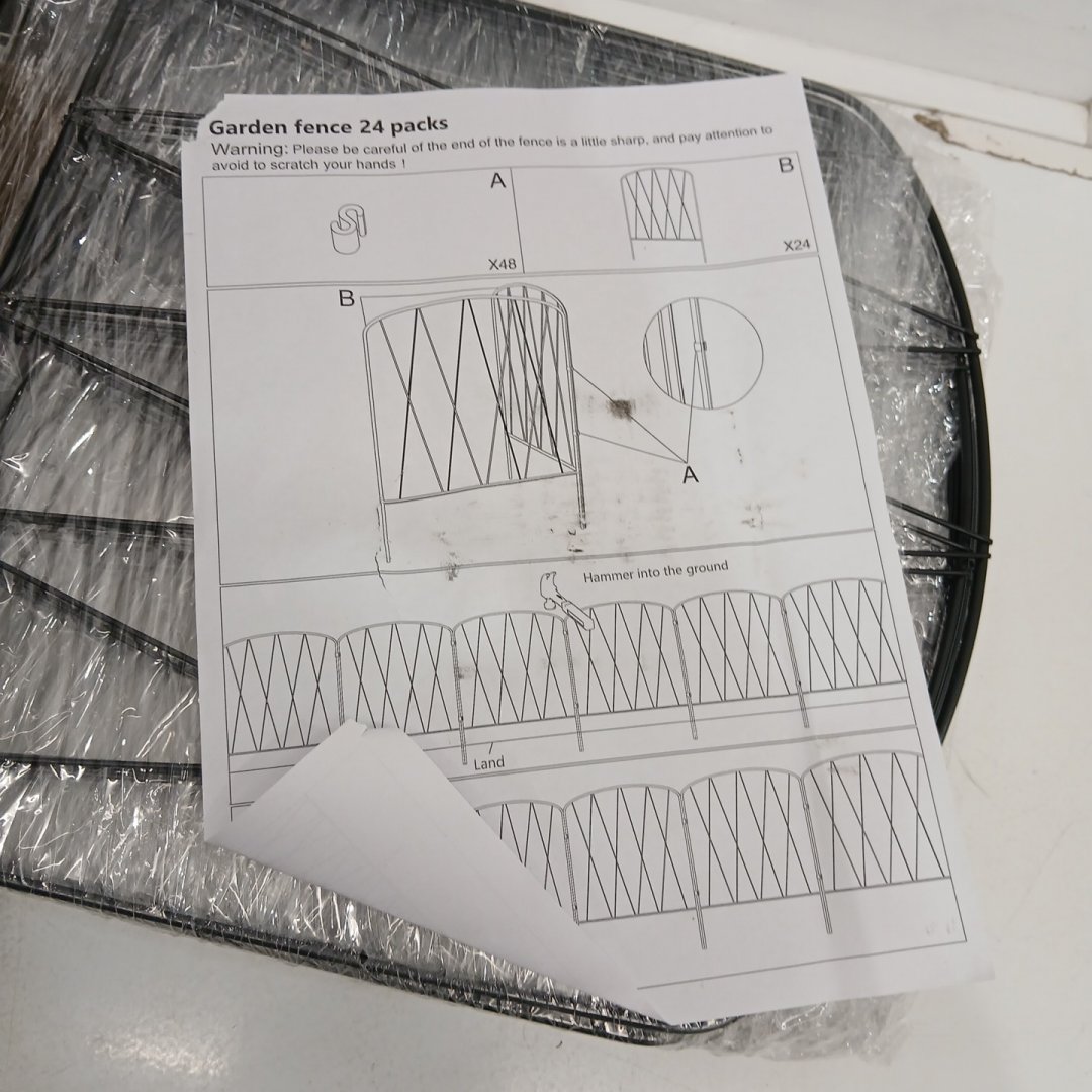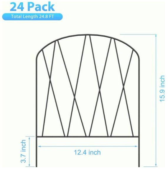 24PK OUMILEN DECORATIVE METAL GARDEN FENCE, FLOWER BED PROTECTION - 12.4" X 15.9" - BLACK (MODEL: ON-ZL12)