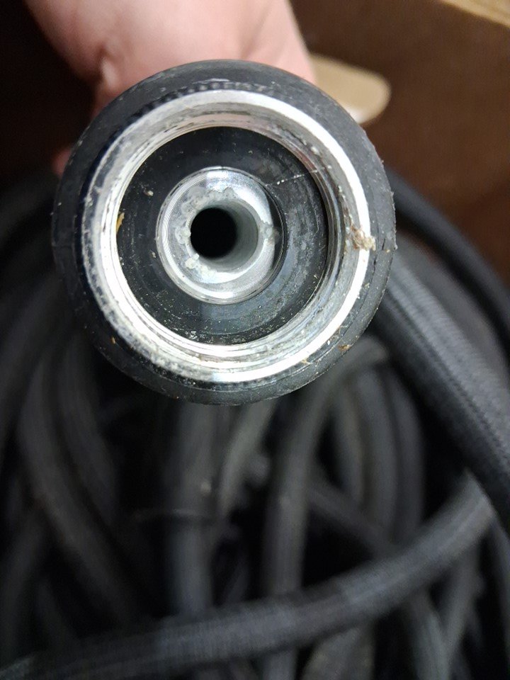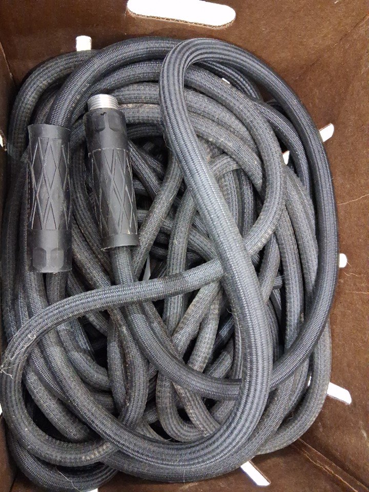 Item had water inside from prior use- some scuffs/dirt on hose and ends from prior use, slight corrosion in one end of hose (see photo) No hose end attachment included