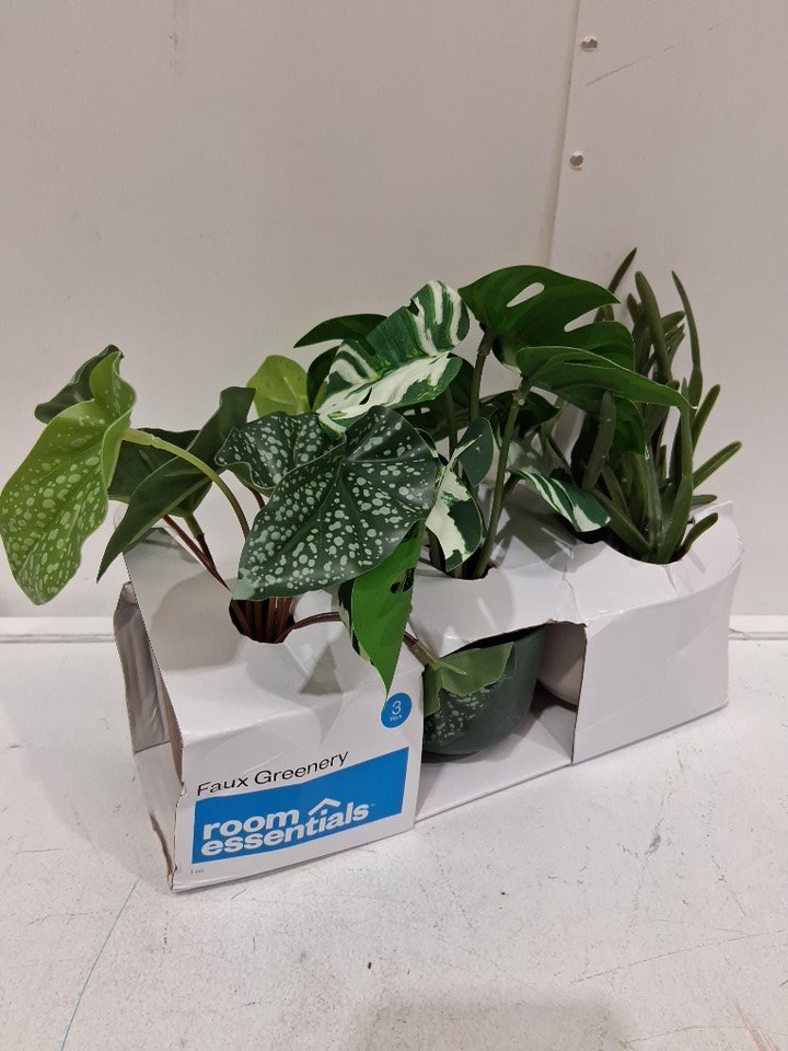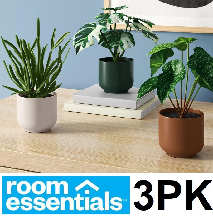 3pk room essentials decorative faux GREENERY plants - multi-colour POTS