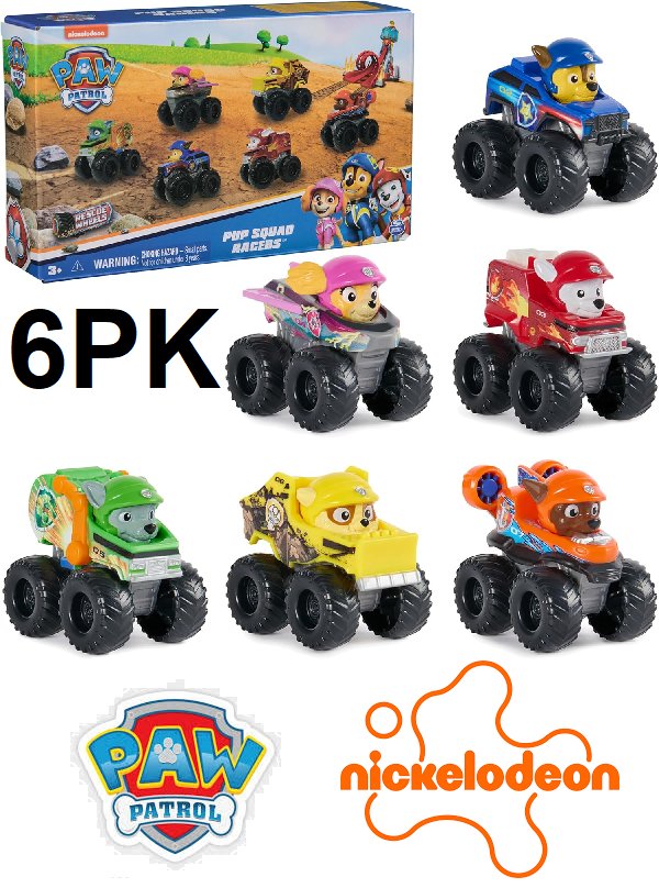 6pk nickelodeon paw patrols pup squad racers rescue wheels - assorted colours - (model: 6071032)