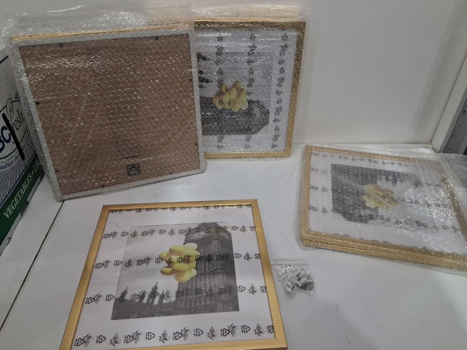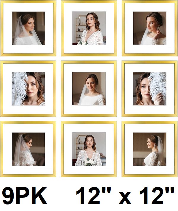 9pk BSRHOME picture frames with stand and hanging hook - 12" x 12" - For 8" x 8" With mat or 12" x 12" without - Gold/clear