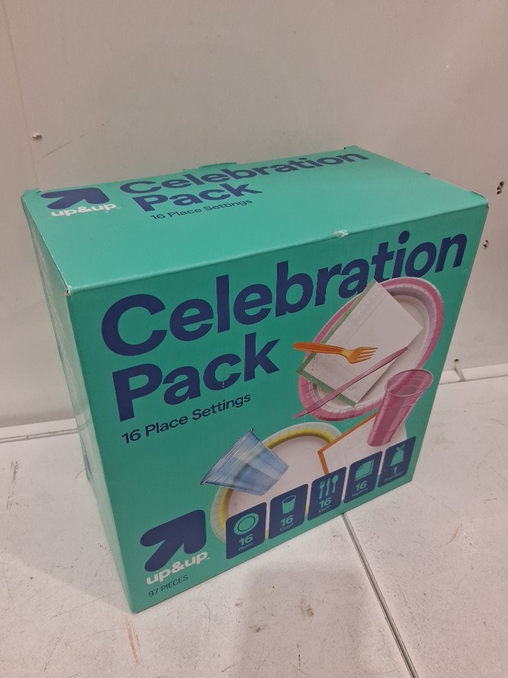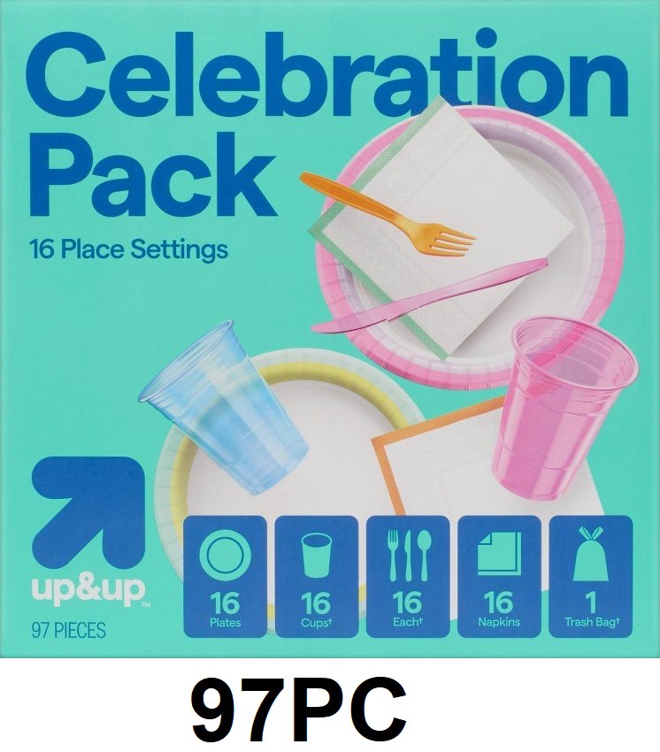 97PC up&up Disposable Table Top Celebration Pack PARTY SUPPLIES FOR 16 PEOPLE -