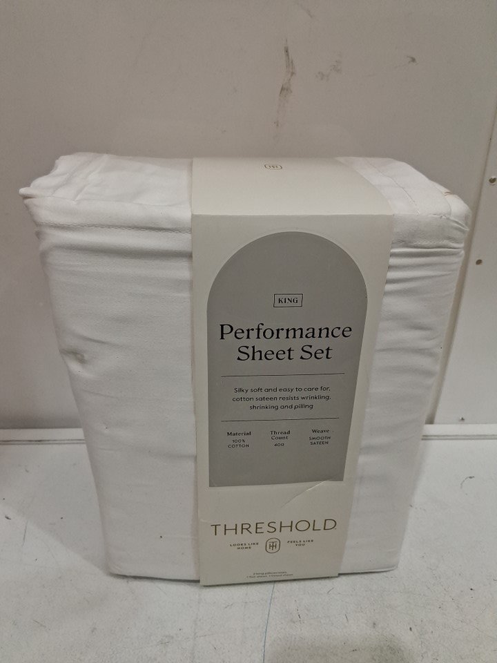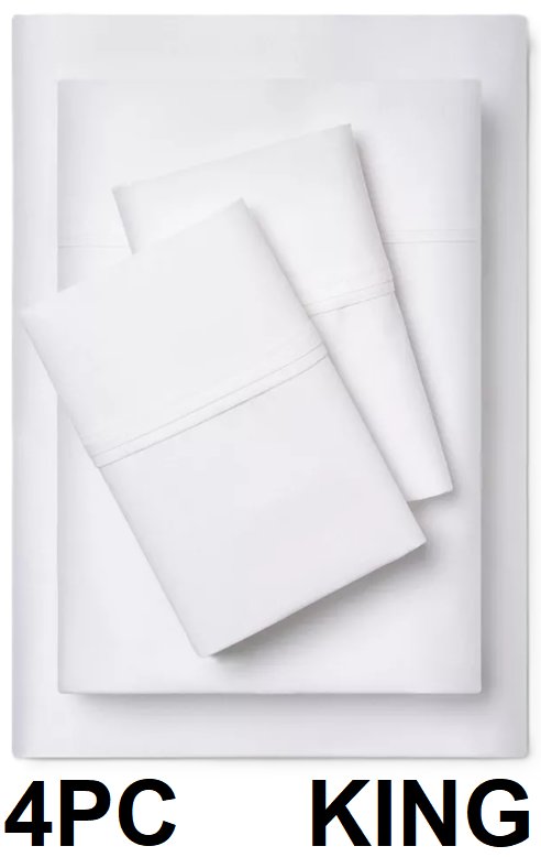 4pc Threshold 100% COTTON Performance 400 Thread Count Sheet Set - FLAT SHEET, FITTED SHEET, (2) PILLOW CASES KING - WHITE