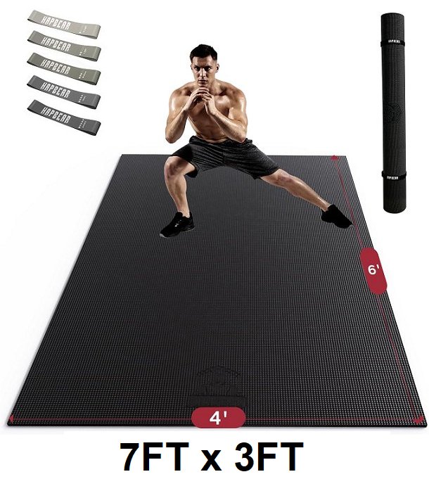 HAPBEAR Non-Slip, Ultra Durable Extra Large Exercise Mat for Home Gym Flooring Cardio, Yoga - 7FT x 3FT - black (model: hb-em03)