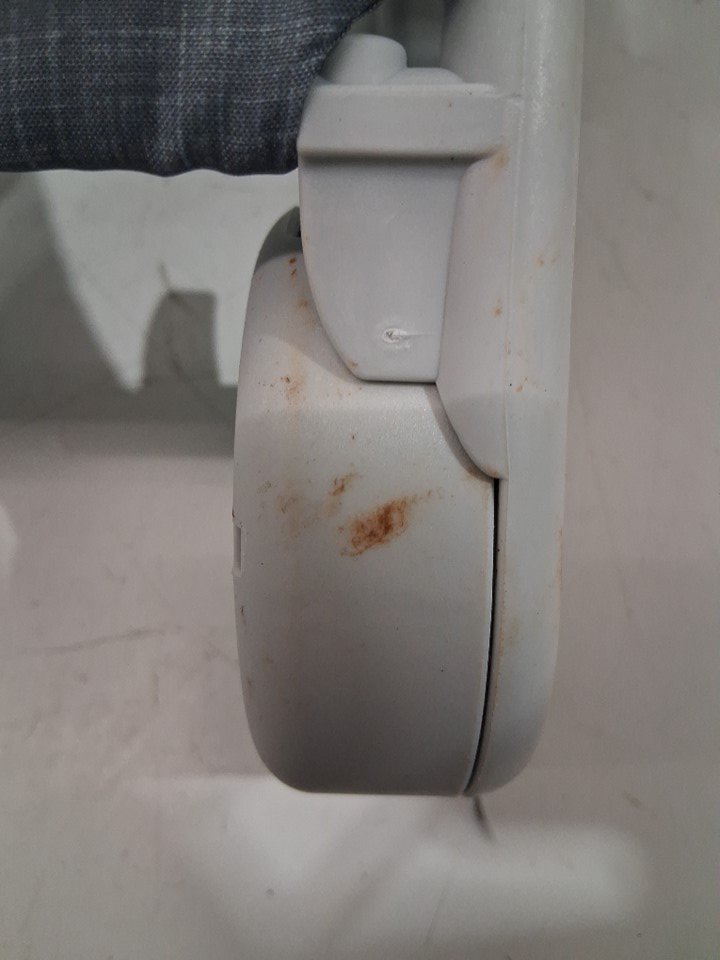 There is some unknown brown staining on the feet of the product. Product was tested for power.