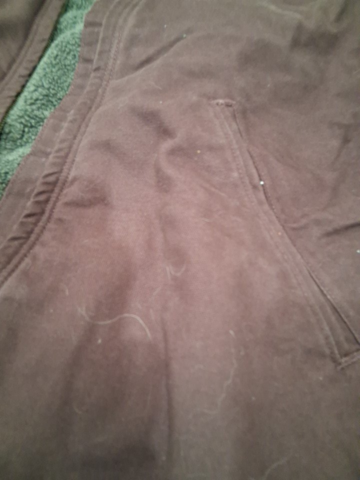 jacket smells like its been used and there was pet hair found on jacket when inspected