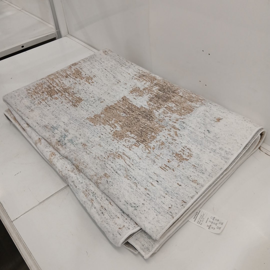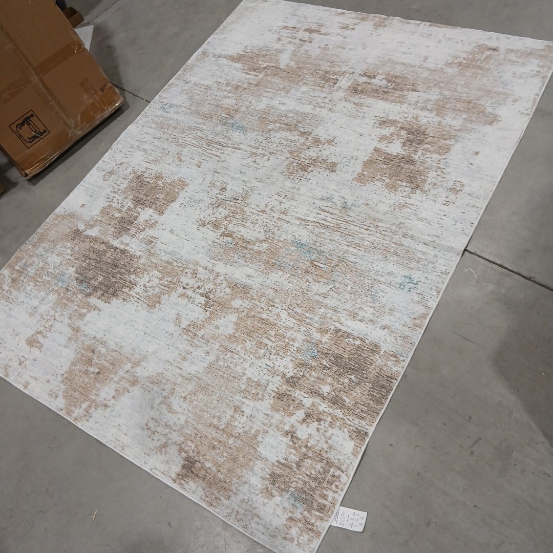 MACHINE WASHABLE ABSTRACT RECTANGULAR AREA RUG - 5FT X 7FT - TAUPE, CREAM, BEIGE