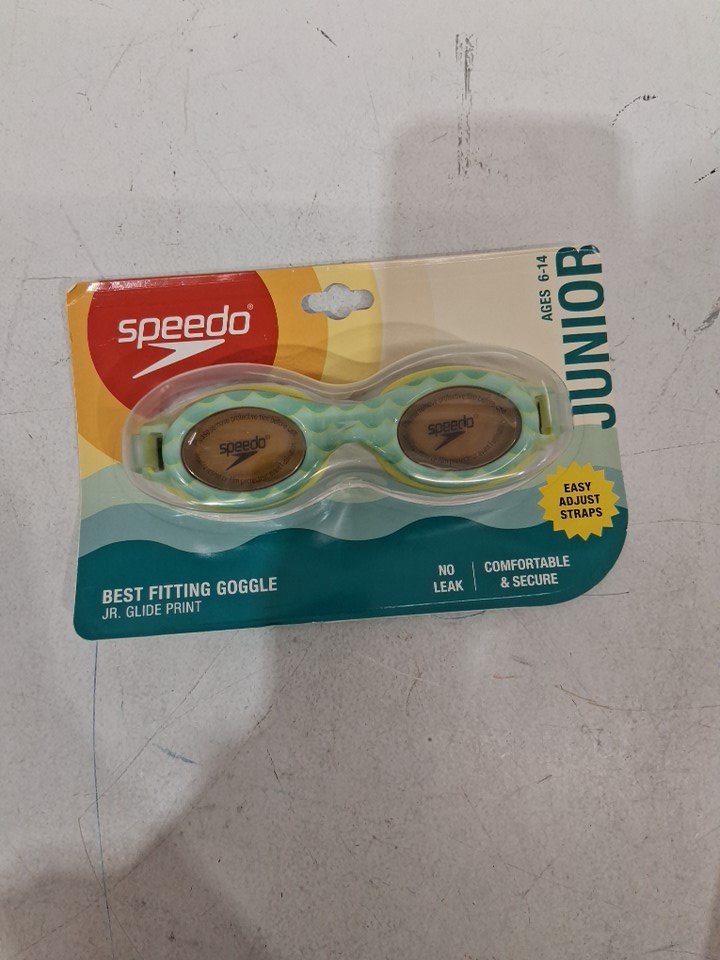 SPEEDO JUNIOR BEST FITTING GOGGLE - AGES 6-14 - GREEN / YELLOW WAVES