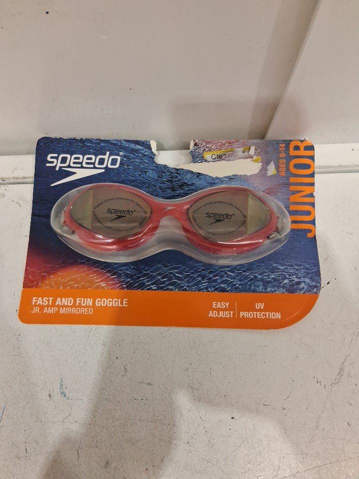 SPEEDO JUNIOR AMP MIRRORED FAST AND FUN GOGGLE - AGES 6-14 - RED / GREY