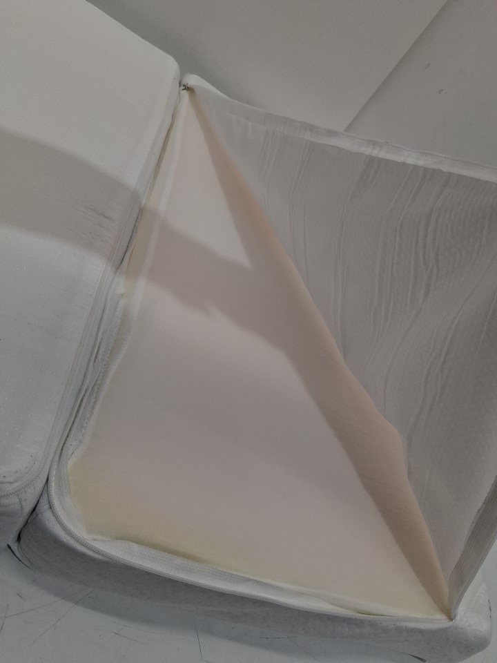 slight discoloration on one of the foams on back, no odor could have been caused by shipping, see photos