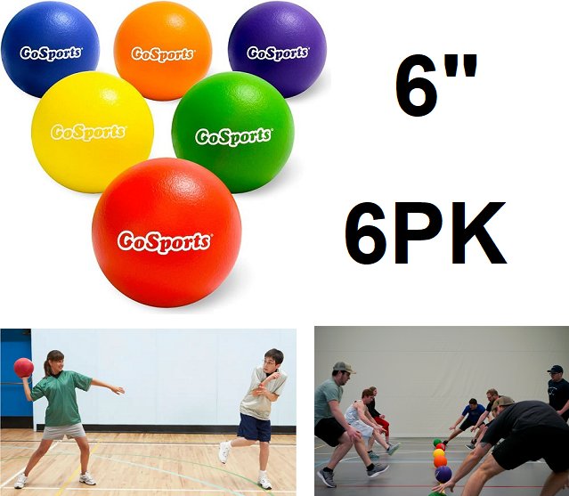 6PK GOSPORTS DODGEBALL SET STING FREE PU FOAM WITH CARRY BAG - 6" - MULTICOLOUR