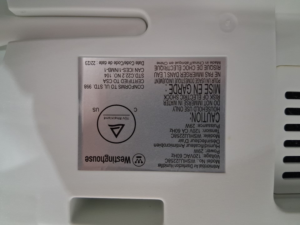 Westinghouse Cool Mist Antimicrobial Air Sterilization Humidifier - 4L -white (model: WSHUJLR2258WH)