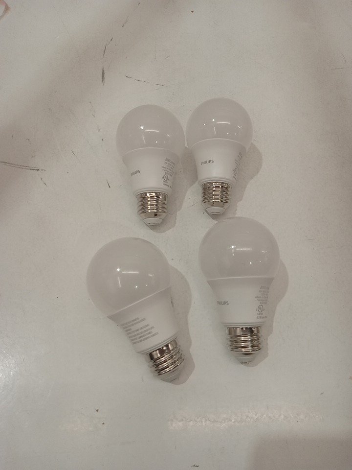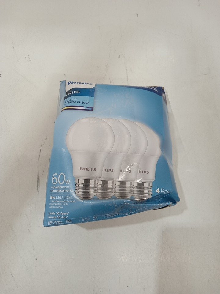 4PK Philips LED A19 Light Bulb - Medium base - 60W, 800LM, 120v - SOFT WHITE - (MODEL: 9290030048)
