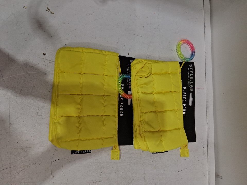 2 Style Lab Expandable Quilted Puffer Pouch & HAIR TIE - yellow