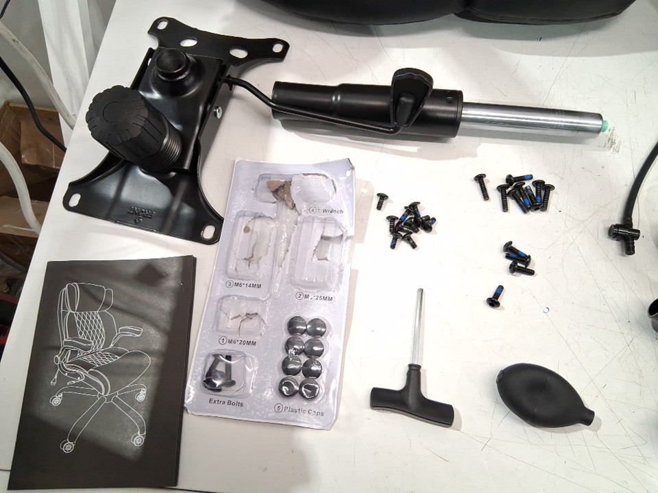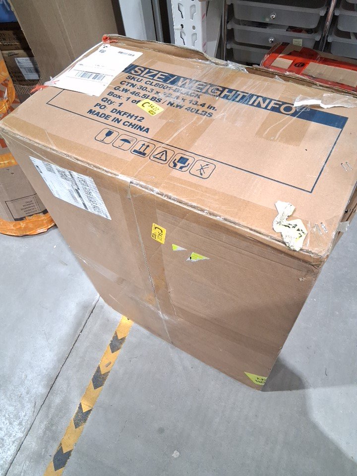 item has marks, residue, pet hairs and scuffs from previously assembly and use - see photos