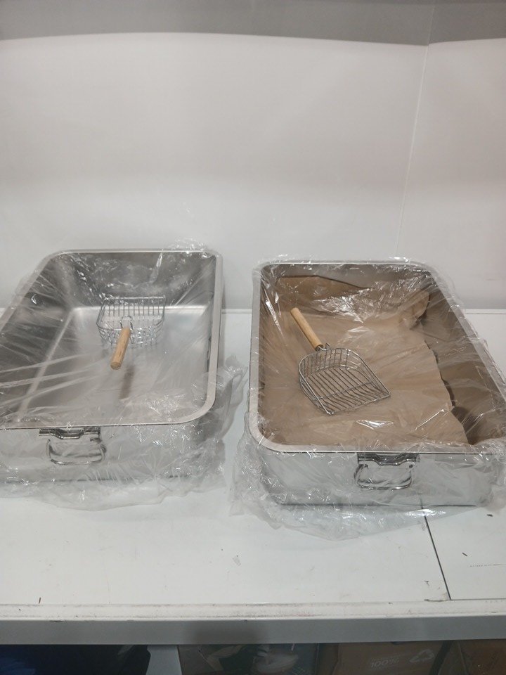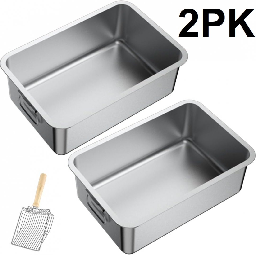 2PK CROTOLO Stainless Steel Cat Litter Box - 23.62"X15.74" - STAINLESS STEEL