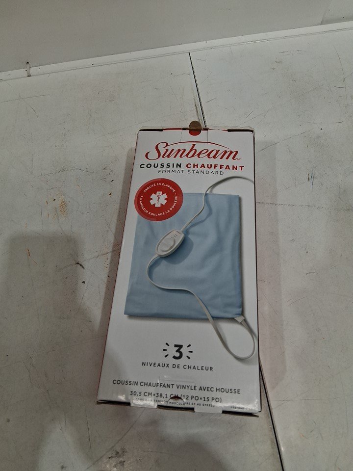 SUNBEAM CLASSIC STANDARD SIZE HEATING PAD WITH 3 HEAT SETTINGS - 12"x15" - blue (MODEL: 756-500-CNR)