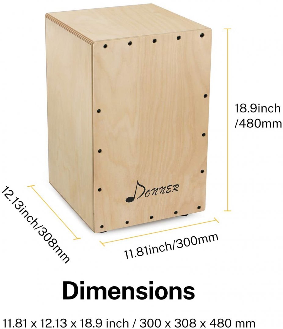 Donner Full Size Cajon Drum Wooden Drum Box Birchwood Percussion Internal Metal Strings with Bag - (model: DCD-1)