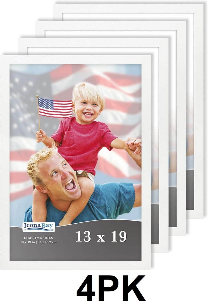 4PK Icona Bay Large Picture Frames Sturdy Wood Composite Photo Frames - 13"X19" - WHITE