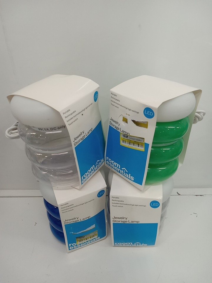 4 room essentials Portable Cordless Storage Novelty Table jewelry STORAGE Lamp with Rechargeable Battery - blue/green/clear