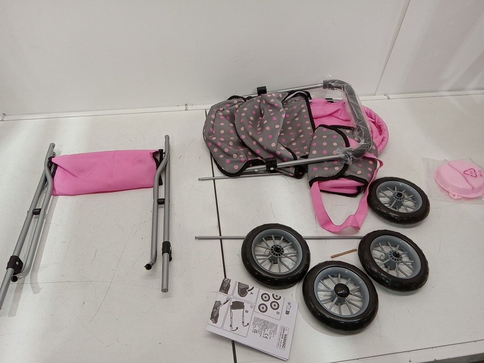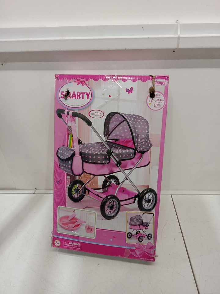 bayer smarty Doll pram Stroller Toy - for dolls up to 18" - 23" x 15" x 22" - pink, grey dots