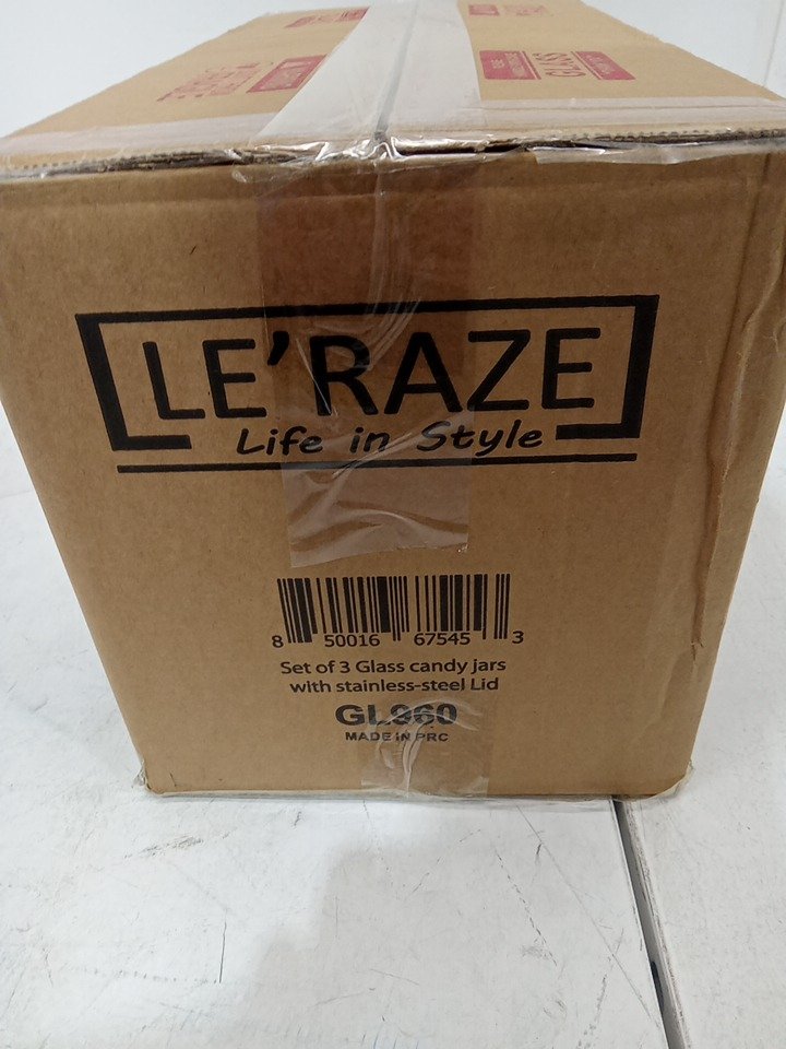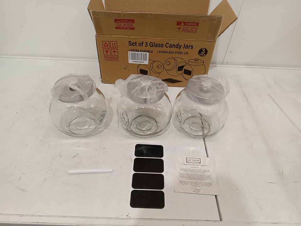 3pk le'raze glass cookie jars with labels & marker - 75oz - glass (model: gl960)
