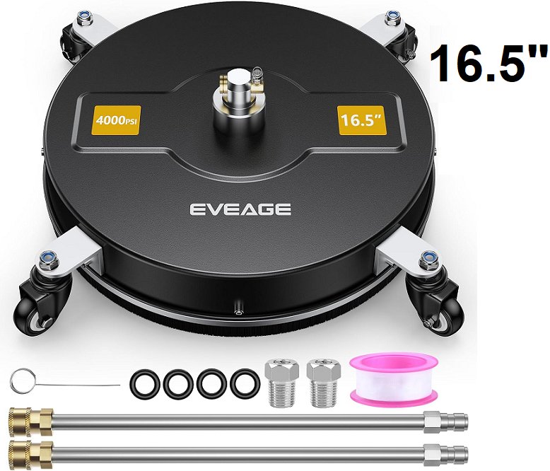 EVEAGE Pressure Washer Surface Cleaner - Upgraded Stainless Steel - 1/4" Quick Connector - 4,000 PSI - 16.5" - BLACK