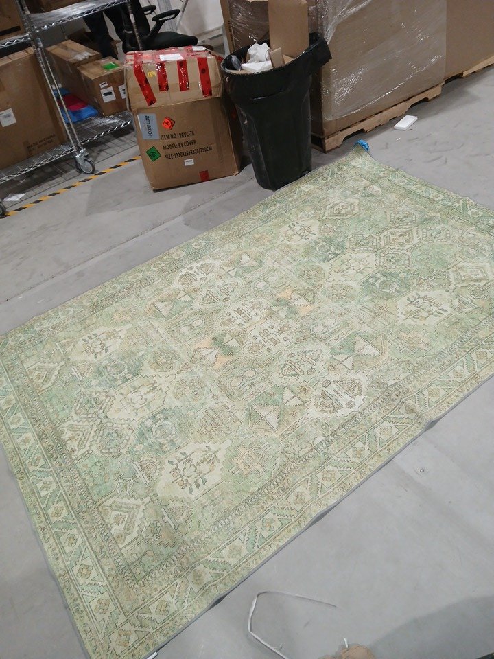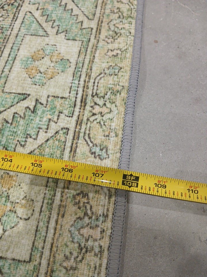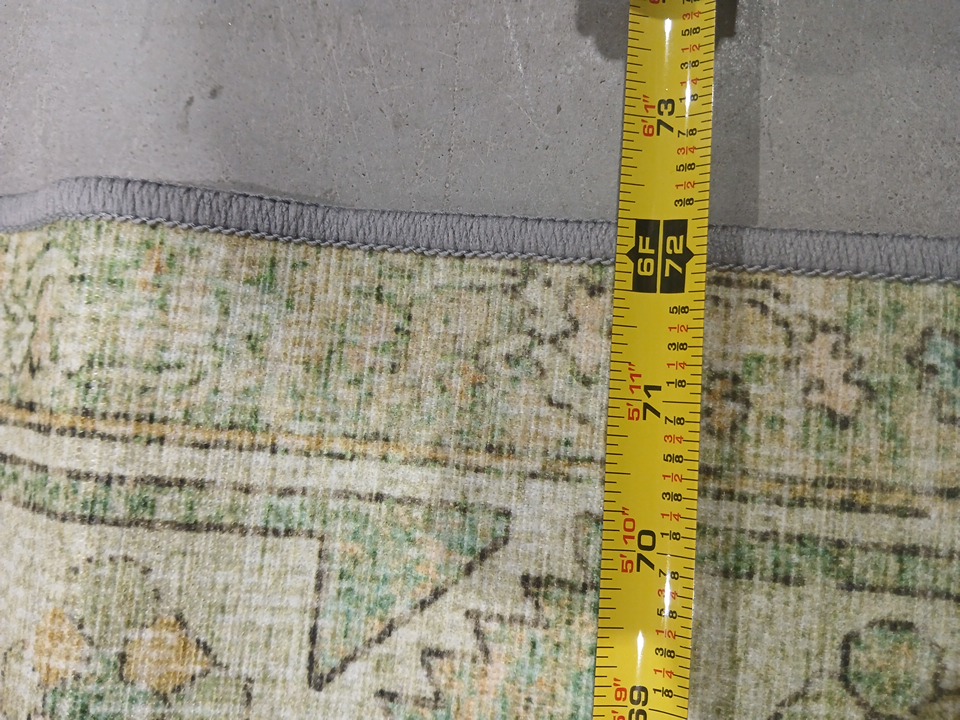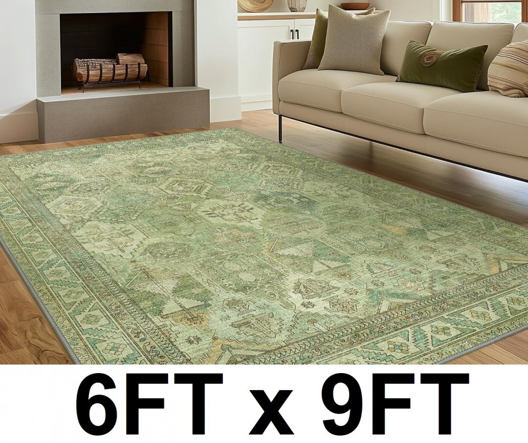 Bavni Washable Vintage Print Carpet Ultra-Thin Chenille Low Pile Lightweight Rug - 6FT X 9FT - GREEN