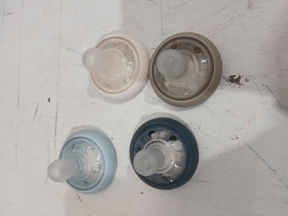 May have some debris on the surface from lack of packaging. Due to lack of packaging, we are unable to confirm what age group the soother is for.