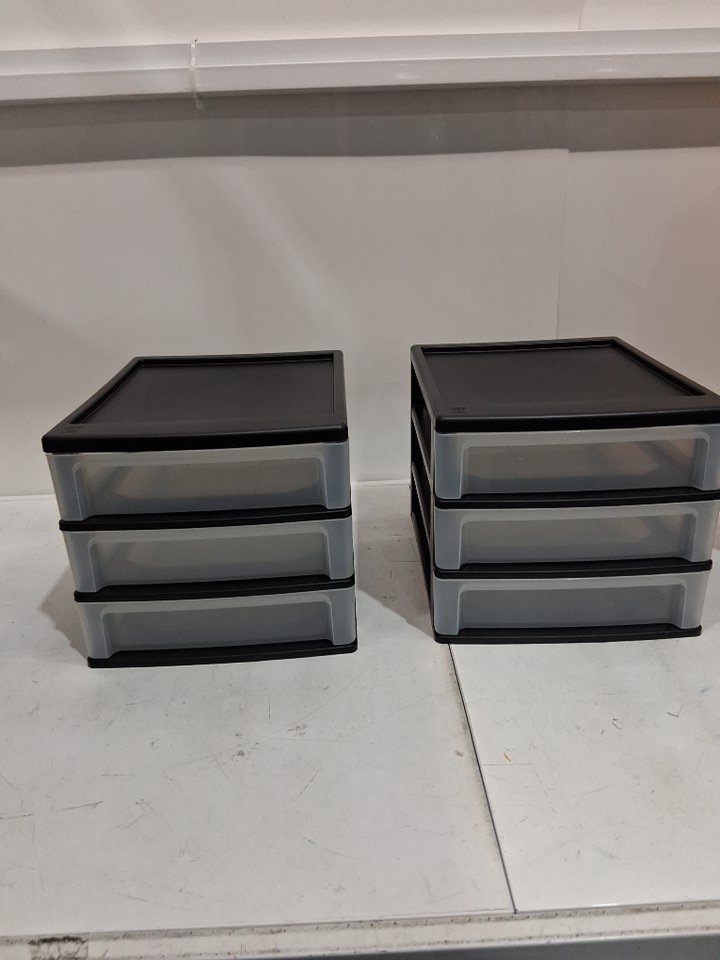 2PK iris usa 3-Drawer Stacking Desktop Organizer - 13" x 10.5" x 9.5" - BLACK/CLEAR (MODEL: CDD-X3)