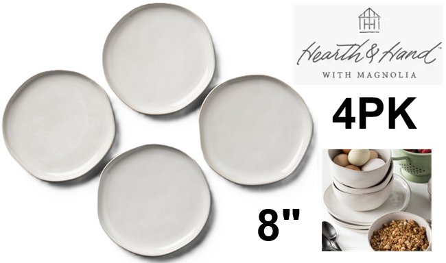 4pk Hearth & Hand Stoneware Salad Plate Set Cream - 8" - Farmhouse Style