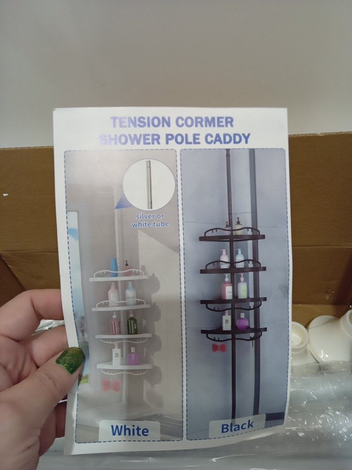 4 tier bathroom shower caddy with adjustable tension rod and hooks - white