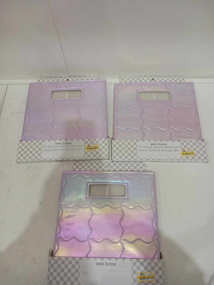 3 teen home knock down iridescent wavy quilted storage bin - 11" - purple