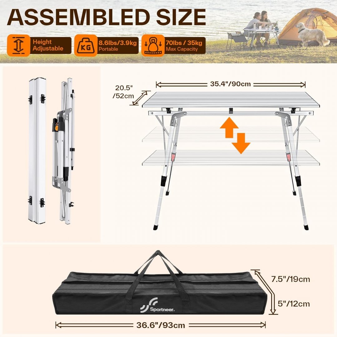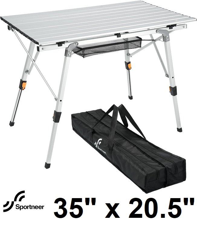Sportneer Aluminum Folding Camping Table - 35" x 20.5" - Silver (Model: ACT-02)