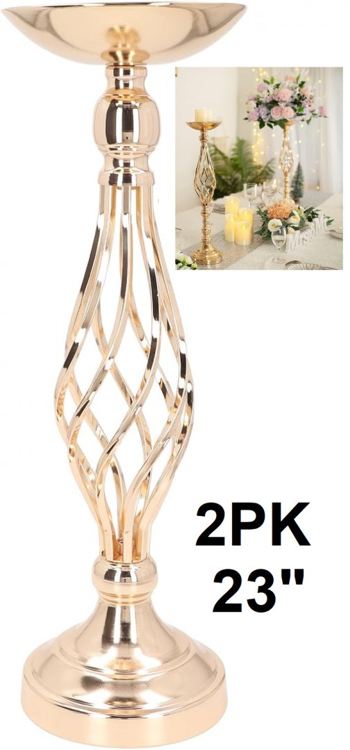 2pk Wedding Centerpieces for Reception Tables - candle or flower - 23" - gold
