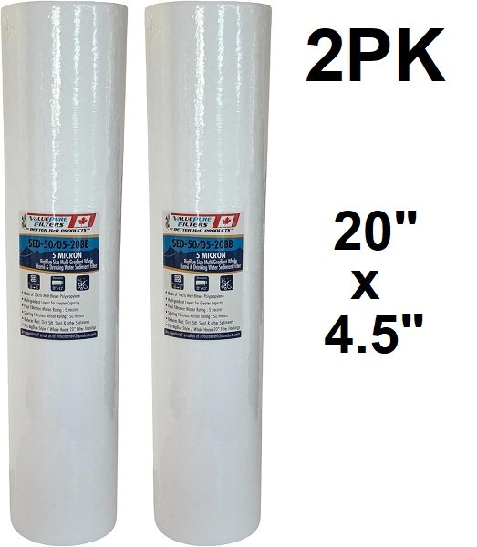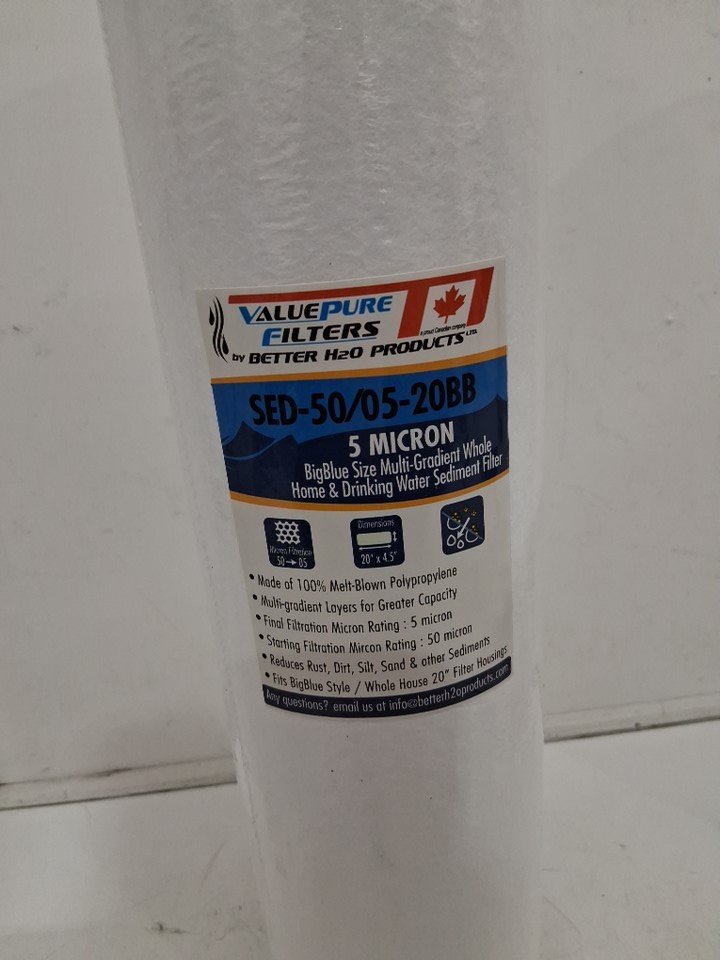 2pk Better H2O Products Inc. 50/05 Micron Dual-Gradient Sediment Water Filter Replacement Cartridge - 20" x 4.5" - white (model: ‎SED-50/05-20BB)
