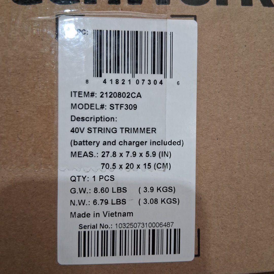 Greenworks 40v Cordless String Trimmer with battery & charger- 12"- green/black (Model: stf309)