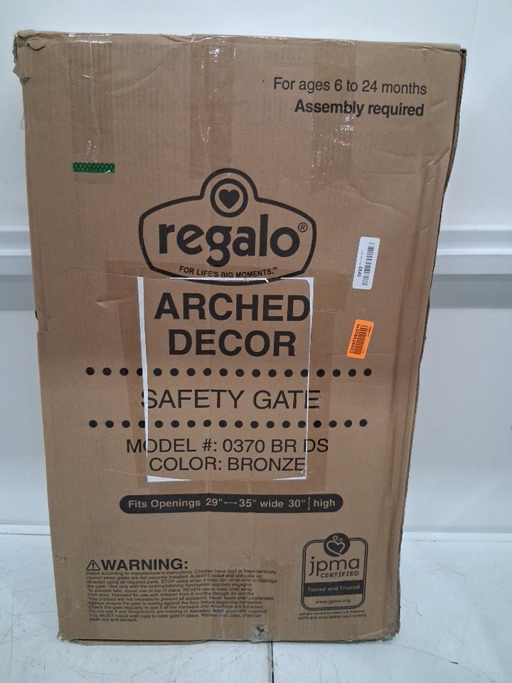 REGALO EASY STEP ARCHED DECOR SAFETY GATE - 30" x 27-35" - bronze - (Model: 0370 BR DS)