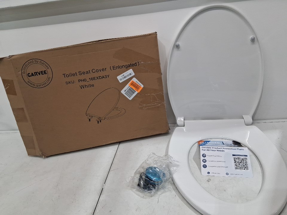 GARVEE White elongated Toilet Seat Quiet Close Cover and Seat, Easy to Clean and Stain-Resistant, Residential Toilet Seat with Lid - 18.5" x 14.2" - White