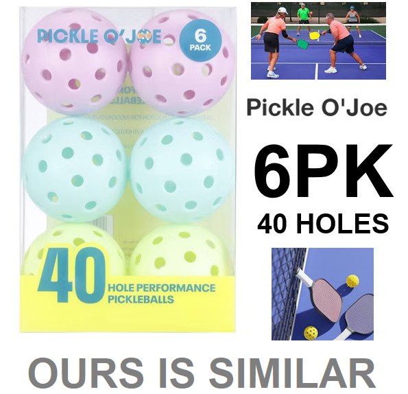 6PK Pickle O'Joe PASTEL PICKLEBALLS - 40 HOLES - PASTEL COLORED (MODEL:088-01-0192)