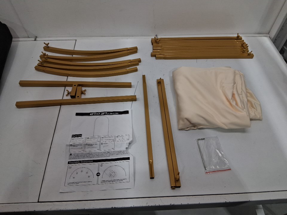 metal wedding, party arch with cover - 4ft x 7.2ft - Gold/beige