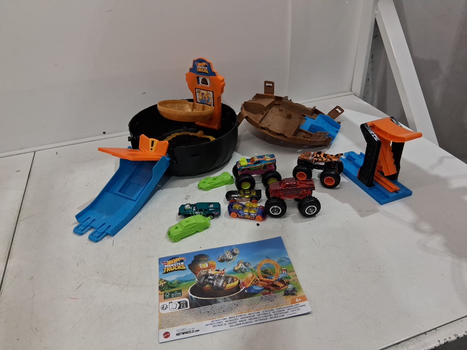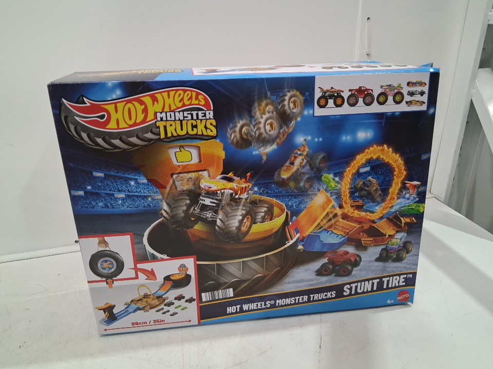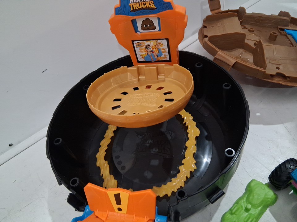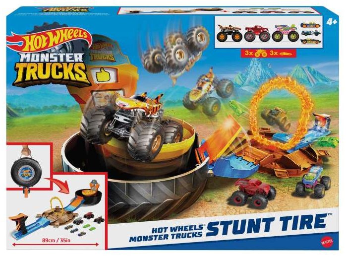 hot wheels monster trucks stunt tire playset - orange/blue/brown - (model: hhy74)