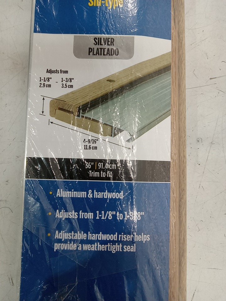 M-D Building Products in. silver Adjustable Aluminum & Hardwood Threshold 4-9/16"x 1-1/8"x 36"- silver (MODEL: 78634)